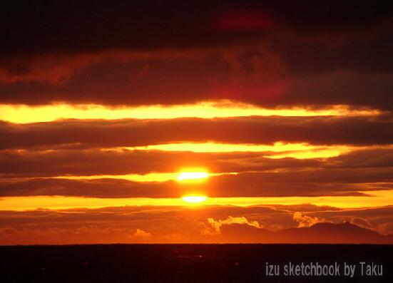 その中に沈んでいく太陽。