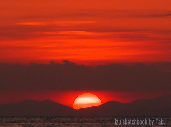 土肥海岸から秋と春に夕陽を撮りますと、さながら海に沈んでゆくような写真が撮れます。