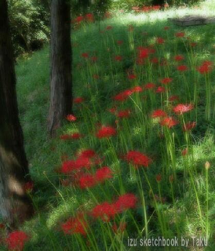 土肥・小下田の中腹に彼岸花の群生地を見つけた。ほんの僅かの期間しか咲かない彼岸花。桜