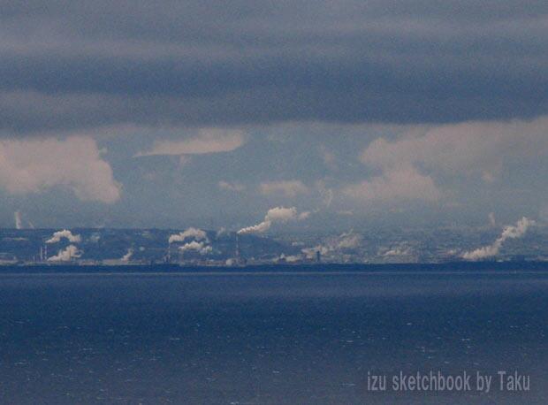 | 望遠で見ますと、対岸の富士市の工場の煙がえらくくっきりと見てとれました。 |