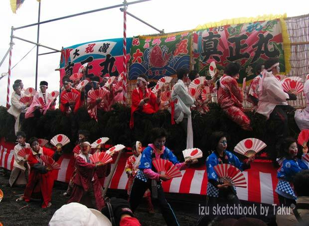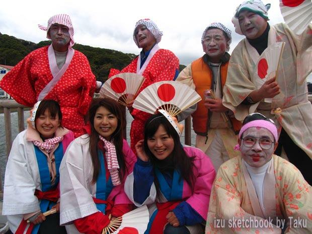 こちらの船では上陸ぎりぎりまで勇み踊りを続けています。