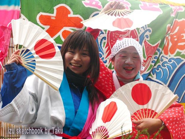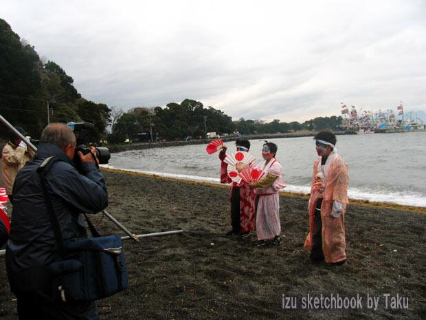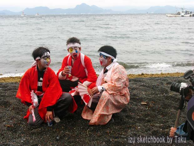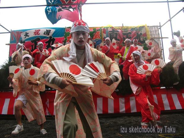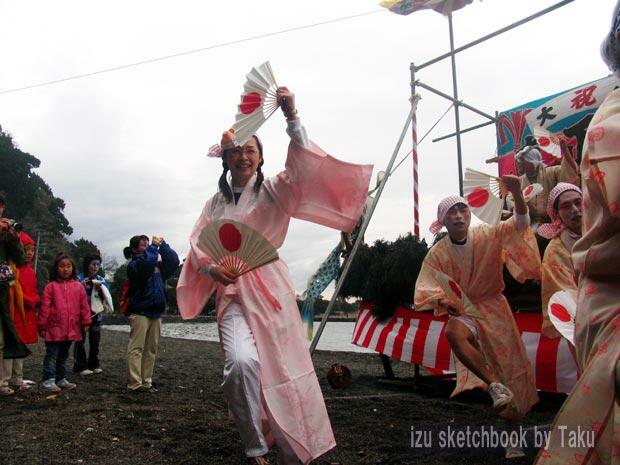 船着場で人物など撮っておりますと、浜の方でもう勇み踊りのステージが始まっております。