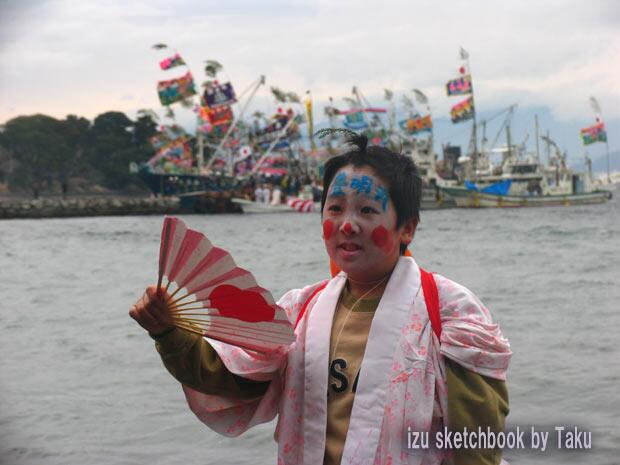 三津の漁港では「内浦漁港祭」が朝から行われており、出店の数ではより盛大に賑わっているはずです。 |