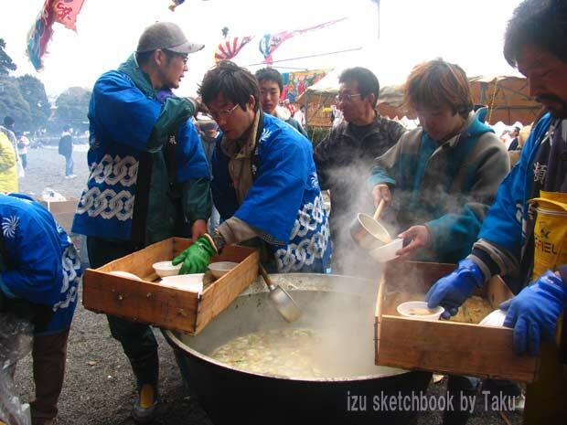 そして、こちらはとん汁を配っています。
