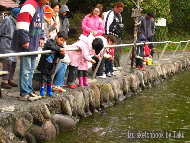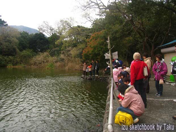 いつもは神秘のベールに包まれている神池も、今日ばかりはファミリーで賑わっていました。 |