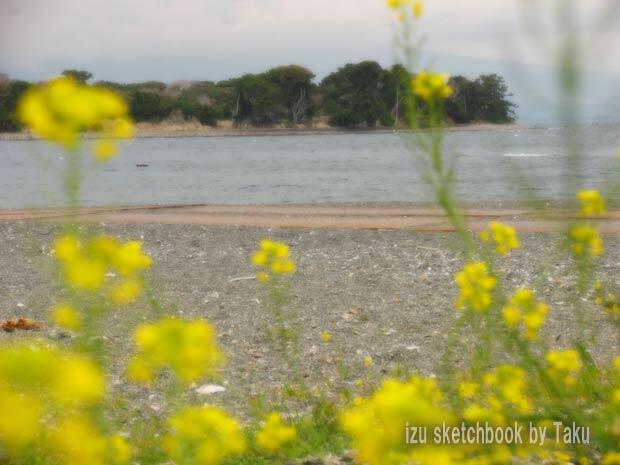 菜の花が喧騒のなくなった浜辺に揺れておりました。 |